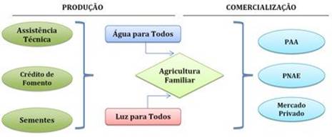 O Programa Brasil Sem Miséria estrutura seu eixo de inclusão produtiva a partir da assistência técnica, do crédito e da infraestrutura necessárias para a produção agrícola e pecuária nos territórios rurais. Assim, os serviços de Assistência Técnica e Extensão Rural (Ater), o Programa de Fomento a Atividades Produtivas Rurais e o Programa Água para Todos, são fundamentais para que o agricultor familiar extremamente pobre estruture e melhore sua produção. Já o Programa de Aquisição de Alimentos (PAA) e o Programa Nacional de Alimentação Escolar (PNAE) são importantes para que os agricultores comercializem a produção, além de contribuírem para a segurança alimentar e nutricional do público-alvo do Brasil Sem Miséria.