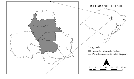 O estudo foi realizado no polo ervateiro do Alto Taquari – RS, formado por 11 municípios e destacando-se na produção e beneficiamento de erva-mate no estado, na qual ao final da pesquisa de campo, em 2016, havia 62 indústrias ervateiras no polo.