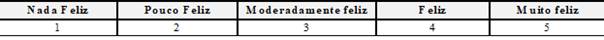 Destaca-se que a escala de Likert foi escolhida para a análise dos dados por ser utilizada na medição das percepções e dos interesses das pessoas (SILVA JUNIOR; COSTA, 2014), a fim de se avaliar a felicidade da população nas situações atuais, e nas suas aspirações futuras.