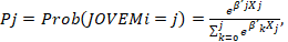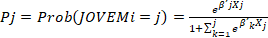 é a variável aleatória que indica a escolha feita; P é a probabilidade do evento j ocorrer; é a matriz de características dos indivíduos e β é o vetor de parâmetros a ser estimado.