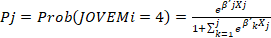 O modelo aplicado, trata-se de 4 categorias exaustivas e mutuamente exclusivas, as 4 probabilidades para uma mesma pessoa sempre somam 1. Logo as possibilidades de escolhas são descritas como: