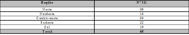 Cabe ao INPI estabelecer os condicionantes para o registro da IG. Até setembro de 2019, foram registradas pelo INPI 54 IP e 20 DO (11 nacionais e nove estrangeiras), um total de 74 IG, quando se inclui as estrangeiras, e 65 IG nacionais (Quadro 1).