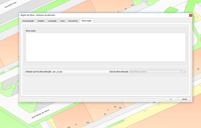 A terceira aba do formulário (Figura 8), por seu turno, determina a localização da intervenção, através da indicação dos seguintes elementos: “Freguesia”; “Localidade”; “Arruamento”; e “Número de Polícia”. A quarta aba (Figura 9) serve para anexar as fotografias correspondentes ao antes e depois da intervenção. As fotos podem ser visualizadas no QGIS e são parte integrante do Relatório Final.