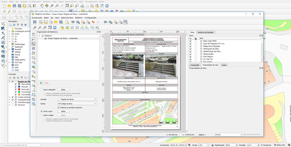 A primeira fase do projeto foi elaborada com recurso a uma estrutura de base de dados em PostgreSQL, que suporta a informação alfanumérica (metadados) dos projetos. O PostgreSQL é um poderoso sistema de base de dados objeto-relacional de código aberto com mais de 30 anos de desenvolvimento ativo, o que lhe garante uma forte reputação de confiabilidade, robustez de recursos e desempenho. Recorreu-se igualmente a uma extensão geográfica da base de dados para georreferenciação dos elementos em PostGIS, que armazena a informação espacial e estabelece a ligação desta com os metadados respetivos. Foi utilizado o software QGIS, para a criação de área de trabalho, formulário, composto por várias camadas de dados e respetivo relatório.