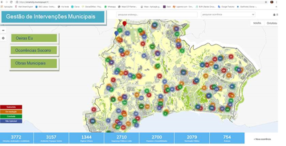 Mas o grande contributo desta fase é o da criação das bases para a fase seguinte (Smart Governance), já em implementação, e que tem em vista, no futuro, uma maior interoperabilidade e interface multinível entre órgãos municipais e ao nível das freguesias. Neste quadro, e de forma a promover o acesso generalizado à informação, a segunda fase do projeto irá integrar numa aplicação (Aplicação de Intervenções Municipais, Figura 13), todas estas informações, que deverão estar disponíveis às Juntas de Freguesia e aos cidadãos, permitindo, quer um histórico, quer a visualização em tempo real de todas as intervenções no município, no sentido de se assegurar o devido planejamento de obra e comunicação aos munícipes.