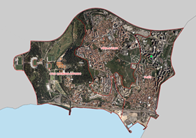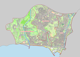 Utilizando como exemplo o modelo criado para a União de Freguesias de Algés, Linda-a-Velha e Cruz Quebrada – Dafundo, a Figura 2 apresenta o mapa em branco sobre o qual é depois possível trabalhar informação. Já na Figura 3 é possível observar a sobreposição da camada de cartografia topográfica, cujo objetivo é descrever com precisão o terreno, os seus acidentes naturais e respetivos objetos permanentes localizados no mesmo, para uma melhor localização e identificação dos locais a assinalar.