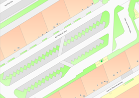 É ainda possível sobrepor uma camada de ortofotomapa (Figura 4) que consiste numa fotografia aérea da qual foram removidas as distorções causadas pela inclinação da câmara e pelo relevo. A escala de um ortofotomapa é uniforme, pelo que pode ser usado como carta. Partindo de qualquer uma destas camadas é possível depois fazer um zoom para registro de obra (Figura 5). Este zoom permite a georreferenciação do local onde decorreu ou irá decorrer a intervenção. Todas as intervenções aqui assinaladas têm a sua origem em reclamações apresentadas pelos munícipes efetuadas diretamente na Junta de Freguesia, ou por comunicação/solicitação do Município, designadamente através do Gabinete de Apoio às Juntas de Freguesia. Este zoom pode ser acessado através da tabela de atributos, pesquisando pelo nome do arruamento.