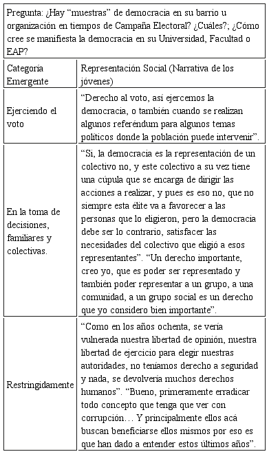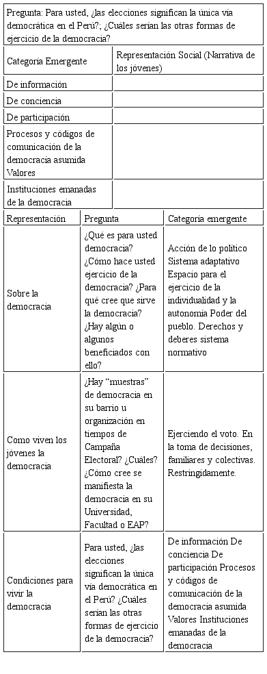 Tabla de categorías emergentes Sobre la democracia