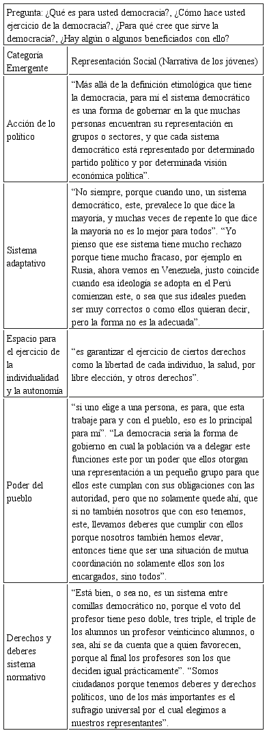Identificar las representaciones sociales de democracia en jóvenes universitarios de universidades públicas y privadas de Lima Metropolitana