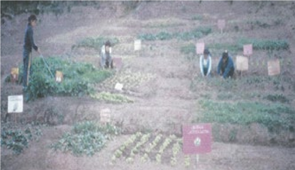 Se tuvo experiencias con hortalizas, realizados en el campo experimental de nuestra Institución Educativa, en una extensión y un área total de 286m2, el cual estuvo previamente cercado; considerando, ocho (08) parcelas demostrativas, cuyas dimensiones fueron de 6m de largo x 3m de ancho, distribuidos uniformemente; realizando los trabajos de campo en el mes de mayo del 2005. (Fig. 3).