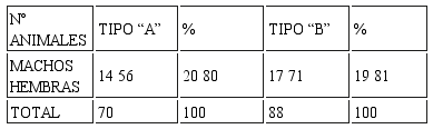 Interpretación: En la fase final el grupo control obtuvo 14 machos y 56 hembras con 20% y 80% respectivamente, para el grupo experimental los resultados fueron 17 machos y 71 hembras con19% y 81% aquí los resultados fueron óptimos llegando a un total de 88 animales, esto nos demuestra que su crianza es ventajosa frente al Tipo “A” en cuanto a prolificidad se refiere, se adaptan fácilmente a la zona de crianza (Yarusyacán).