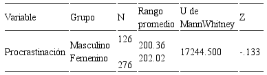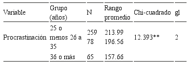 En contraste, hubo diferencias significativas de procrastinación según la edad, a favor del rango de 25 años a menos.