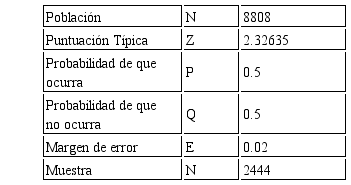 La muestra fue probabilística aleatorio simple de 2,444 estudiantes, que se obtuvo con el siguiente procedimiento: