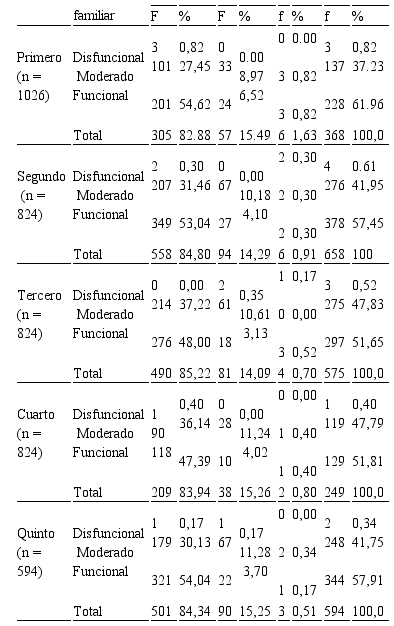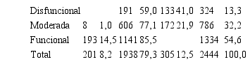 Por otra parte, Buena funcionalidad familiar significa cuando los resultados obtenidos oscilan de 70 a 100 puntos, Funcionalidad familiar moderada de 30 a 69 puntos y Disfuncionalidad familiar: menos de 29 puntos.