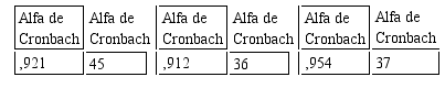 La confiabilidad se determinó con el coeficiente de consistencia interna alfa de Crombach. Obtenidos con el programa estadístico SPSS de 0,921, 0,912 y 0,954, mayores que 0,6, con los cuales se concluye que éstos instrumentos fueron válidos y confiables. A continuación se presenta la confiabilidad de los instrumentos.