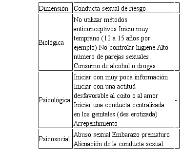 El siguiente cuadro nos permite observar la multi-dimensionalidad en la que las conductas sexuales de riesgo se producen: