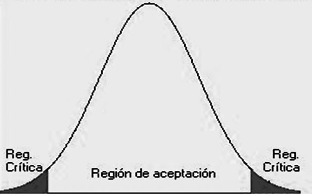 Región crítica: t tabulada = +/- 2,776. Puesto que H1 es bilateral, la región crítica abarca todos los valores de t ≥ +2,776 o t ≤ -2,776.