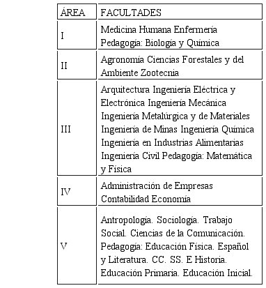 Clasificación de las pruebas de admisión aplicadas en la UNCP por áreas y grupos