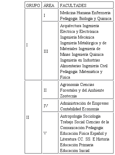 En el examen de admisión 2008-II y para el examen de primera selección se aplicaron dos tipos de pruebas, las que respondieron a dos grupos y cinco áreas; los grupos y las áreas agruparon a las diferentes facultades por afinidad de conocimientos a ser evaluados en las respectivas pruebas: