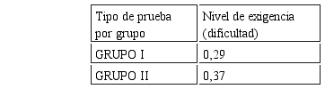 Los dos tipos de prueba del examen tuvieron un nivel de exigencia DIFÍCIL para fines psicométricos, esto se obtuvo comparando con el Cuadro de Clasificación de Nivel de Dificultad (Cortada, 1999, p. 182).