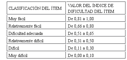 El valor obtenido debe ser positivo y estar comprendido entre 0,00 y 1,00 para discernir el grado de dificultad del ítem.
