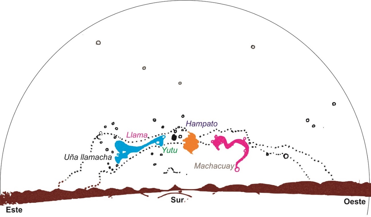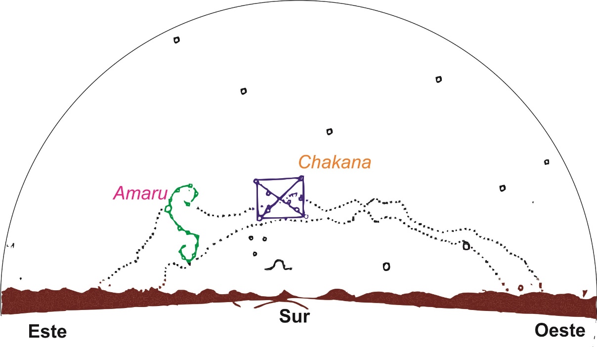 A manera de resumen sobre las etapas de desarrollo andino enumeradas en líneas anteriores, podemos decir que, existen tres constelaciones, las cuales son la base de todo este sistema agroastronómico; éstas serían: la chakana, el amaru y el suchu (Zuidema, 1989). Del mismo modo, la vía Láctea (mayu o río andino) se constituiría como un eje de orientación ritual. Con relación a esto último, el clérigo y cronista español Cristóbal de Molina (1575-1576), describió en su Relación de las fábulas y ritos de los Incas una ceremonia de peregrinaje en la ciudad del Cusco que se realizaba de forma anual durante el solsticio de junio realizado por los sacerdotes de la panaca real, sin duda un documento relevante para este tipo de investigación.
