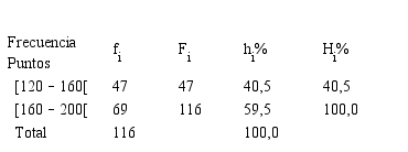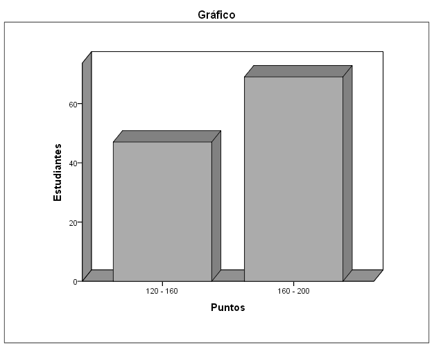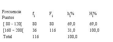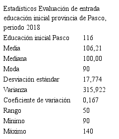 Descripción e interpretación: Los resultados obtenidos nos muestran que los estudiantes están en la etapa de inicio y en proceso de logro de los aprendizajes relacionados a las competencias del área de matemática, así lo evidencia la media de 106 puntos aproximadamente y el rendimiento de los participantes es más o menos homogéneo, así lo demuestra el coeficiente de variación obtenido de 16%