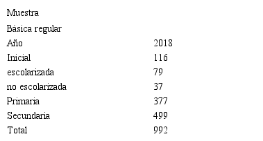 La población estuvo constituida por los estudiantes de educación básica en los niveles: Inicial, primaria y secundaria de las Instituciones educativas de la región Pasco, reflejada en la siguiente tabla: