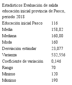 Descripción e interpretación: Los resultados obtenidos nos muestran que los estudiantes están en la etapa de proceso de logro y logro de los aprendizajes relacionados a las competencias del área de matemática, así lo evidencia la media de 158 puntos y el rendimiento de los participantes es más homogéneo, así lo demuestra el coeficiente de variación obtenido de 15%.