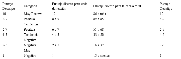 Aplicando la conversión de los puntajes directos a Decatipos y categorías hemos encontrado: