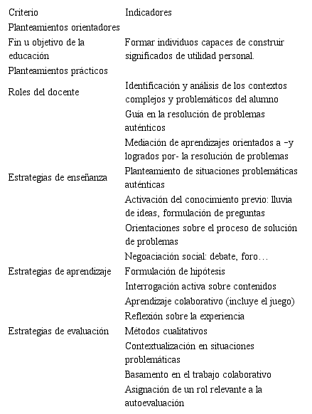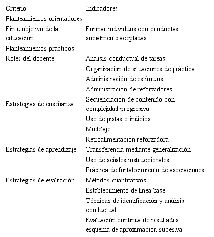 La Tabla 4 muestra igualdad en la distribución de indicadores (4) para los criterios Estrategias de Enseñanza, Estrategias de Aprendizaje y Estrategias de Evaluación. Además de esta igualdad en estos tres aspectos, se observa, en relación con los enfoques cognitivista y conductista (principalmente con este último) un notable avance en la atribución de responsabilidades al alumno: en las estrategias de evaluación, se contemplan dos indicadores asociados con la actuación de este; son: el basamento en el trabajo colaborativo y la asignación de un rol relevante a la autoevaluación.