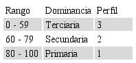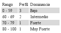 Teniendo en cuenta la aplicación del test de cuadrantes de Herrmann a los estudiantes, los resultados se presentan a continuación y de acuerdo a la tabla 3, el puntaje superior a 70 indica preferencia clara de fuerte y muy fuerte, un puntaje inferior a 59 indica no preferencia o evita, y un puntaje entre 60 - 69, preferencia intermedia. Donde el perfil expresado en la tabla 2, se expresa en una representación visual en cuatro cuadrantes de los estilos preferidos y permite mostrar tres estilos o modos de preferencias: la 1 ó primaria correspondiente a un estilo preferente, la 2 ó secundaria, o simplemente un estilo usado, y pero no preferente la 3 ó terciaria, que indica a un estilo evitado o rechazado (De la Parra, 2004).