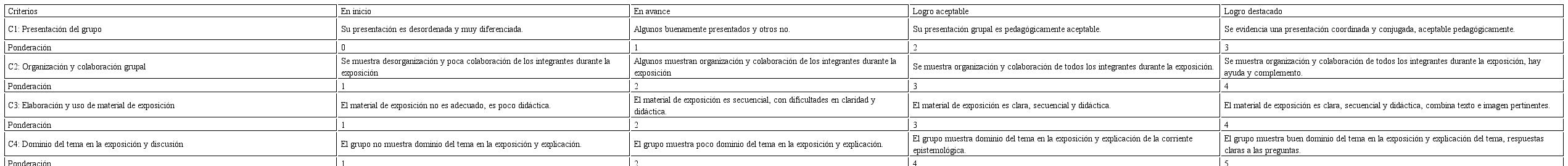 Rúbricas para la valoración de la exposición-discusión de trabajos grupales: propuesta para autoevaluación, coevaluación y heteroevaluación. (ver anexo)