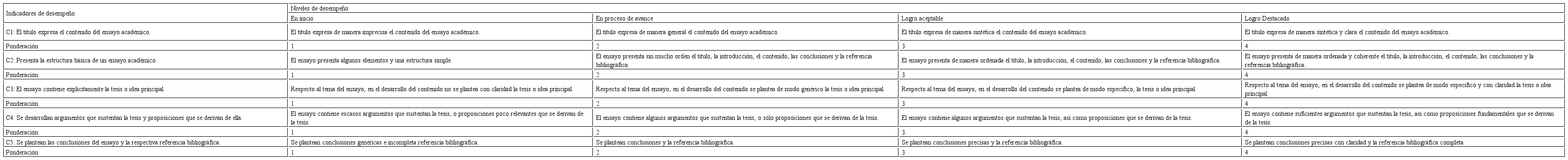 RÚBRICA PARA LA VALORACIÓN DE ENSAYO ACADÉMICO