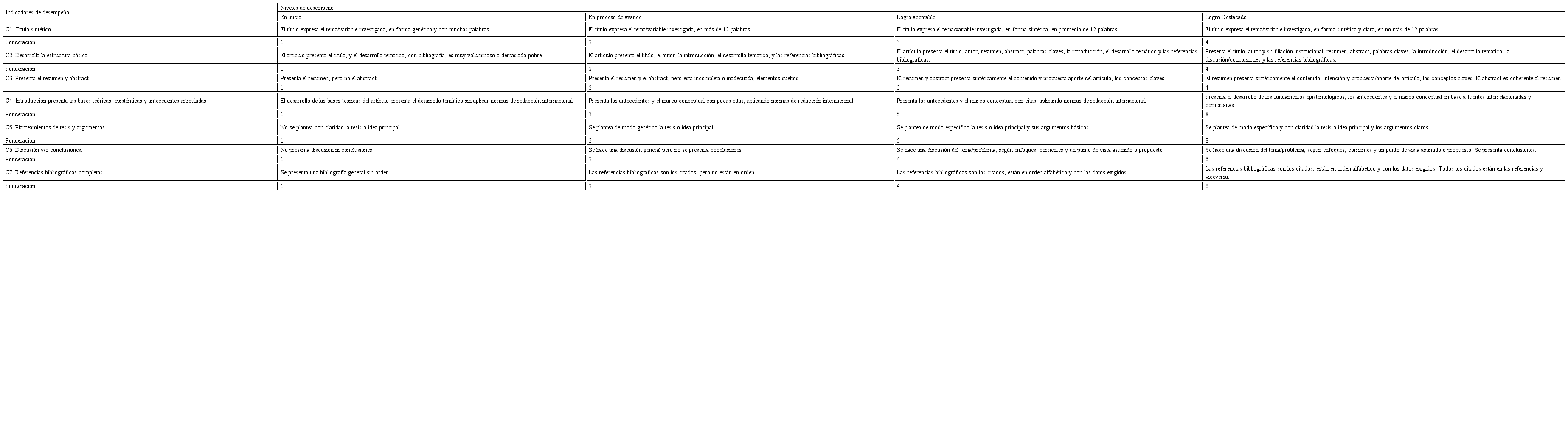 e) Rúbricas para la valoración de artículos académicos (ver anexo)