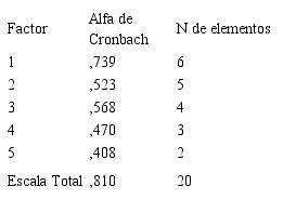 Respecto al análisis factorial Hernández, Fernández y Baptista (2014) indican que para decretar la validez de constructo es considerada la más importante de los tipos de validez existentes, por tal motivo, realizar el análisis factorial exploratorio permitió probar que los ítems se alinean a cinco factores. Es necesario señalar que Sierra, Rojas, Ortega y Ortiz (2007) reportaron unidimensionalidad en la escala, siendo esto, lo que buscan muchos autores. Sin embargo, es importante señalar que Wright y Linacre (1989) mencionaron que “en la práctica, ningún instrumento puede ser perfectamente unidimensional” (Citado en Burga, 2006, p.55).
