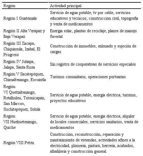 En Guatemala, las empresas cooperativas de servicios especiales desarrollan actividades diversas, (ver tabla 3), lo cual puede significar una opción altamente viable en el país como se ha dejado entrever.