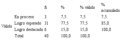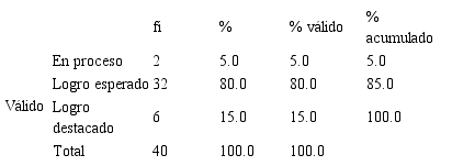 b) Resultados de la evaluación del desarrollo de los niveles de conciencia y las dimensiones humanas de los 40 estudiantes de la carrera profesional de Educación Primaria de la Facultad de Educación, donde el proceso de formación docente fueron implementados con el modelo educativo integral, Perspectiva multinivel-multidimensión de la educación.