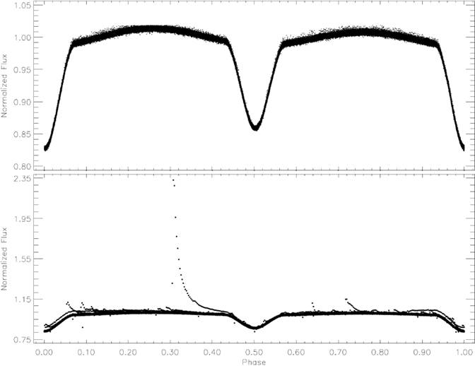 After removing all the observations with large errors from the data, and using the ephemeris taken from the Kepler Mission database, the phases are computed for all data, and the obtained light curves are shown in Figure 1. Because of the study’s format, the detrended short cadence data were used in the analysis instead of those of the long cadence. The data were arranged in suitable formats for different analyses, such as the light curve analysis and the flare event calculations.