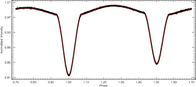 The light curve of KIC 12004834 was analyzed by the PHOEBE V.0.32 software (Prša & Zwitter 2005) which depends on the 2003 version of the Wilson-Devinney Code (Wilson & Devinney 1971; Wilson 1990) to compute the physical parameters of each component. In the analyses, the averaged data were computed phase by phase with an interval of 0.001 to decrease the scattering. Although several modes were tried in the light curve analyses, astrophysically acceptable parameters were obtained only for the detached system mode.