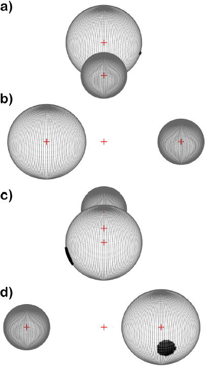 However, there is one more controversial feature of KIC 12004834, which is stellar spot activity. During the analysis process, we recognised that the synthetic curve derived without any stellar spot does not fit the observations around phase 0.27. Because of this, the results of the light curve analysis point to the presence of stellar spot activity on one of the components. Considering the temperatures of the components we assumed that the flare activity is a sinusoidal variation caused by the rotational modulation due to the stellar cool spots. Indeed, this sinusoidal variation could be easily modelled with a cool spot on the primary component as seen in the 3D model of Roche geometry shown in Figure 4. However, the analyses indicated that the location of the spot is not changed on the primary component along 89.19 day despite the presence of high level flare activity. Considering the rapid variation in the flare behaviour, a stable spotted area on the component is very interesting. According to Hall et al. (1989) and Gershberg (2005), it is well known that the spotted areas on the active components of some RS CVn binaries can keep their shapes and locations for as long as two years. Therefore, the behavior of the cool spot activity observed for KIC 12004834 is not inconsistent with the stellar spot activity phenomenon.