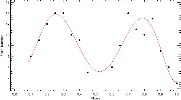 In contrast to the known UV Ceti flare stars, KIC 12004834 is a binary system. It is well known that the flare events are generally random phenomena. To test this situation for a close binary like KIC 12004834, we calculated the phase distribution of the flares, depending on the orbital period of the system. The phase distribution is shown in Figure 7. In the figure, the distribution of the total number of flares computed in phase intervals of 0.05, for all 149 flares is shown.