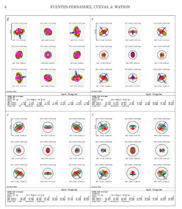 The tolerances in tilt and misalingment of the optical components are compatible with the optomechanical design (Cuevas et al. 2016).
