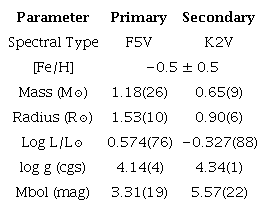 eclipsing binary in a circular orbit and composed of F5V + K2V components.