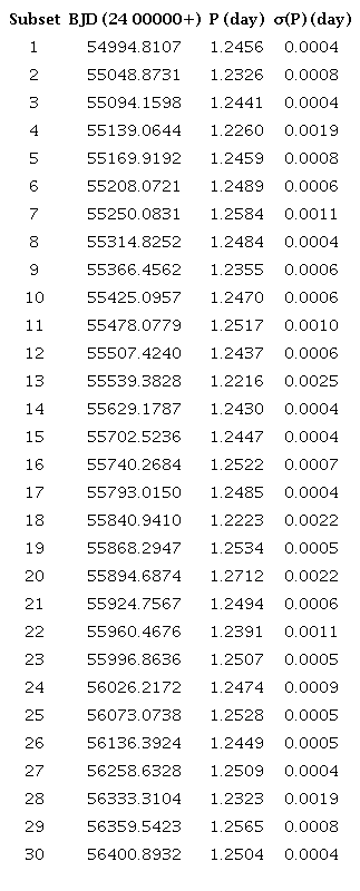 We tabulate O − C analysis results in Table 8. N is the number of the minimum,