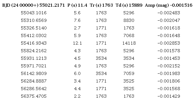 reveals additional low (mmag) amplitude light variations in time and occasional