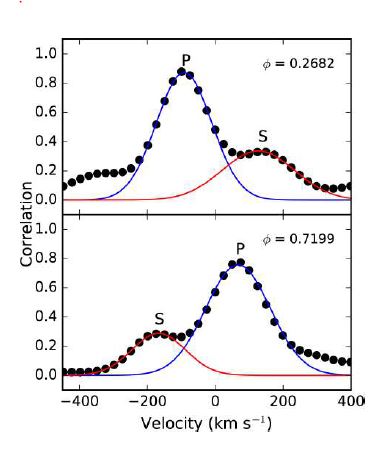 circular y compuesta de dos estrellas, F5V + K2V. Al sustraer la mejor curva de