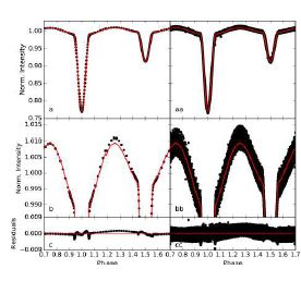 combinado muestra que el sistema es una binaria eclipsante separada, en órbita