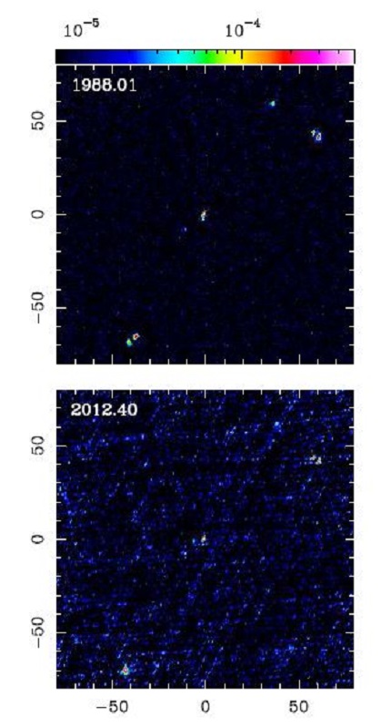 Both images were restored with the synthesized beam of the 2012.40 observations, 1.′′47 × 0´´.94; P A = −24◦, and are shown in Figure 1.