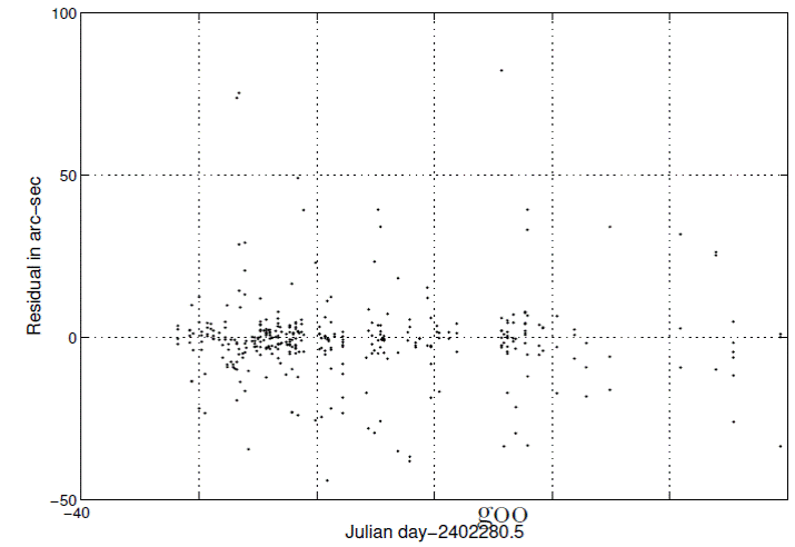 Given, nevertheless, the small perihelion distance one cannot help but wonder if perhaps outgassing occurred, giving rise to nongravitational forces. Perhaps the randomness of the residuals can be improved? The nongravitational force model I use is